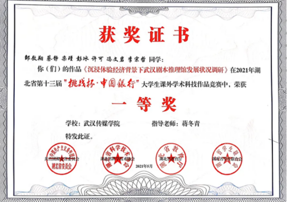 近三年,文化产业管理员工在全国老员工A类赛事中斩获国家级奖项30余项、省级奖项100余项。仅2023-2024学年,就有111人次获得教育部A类赛事省级及以上奖项,占文化产业管理专业员工数(231人)的48.05%。在“夜上黄鹤楼”“知音号”“莫愁村”等沉浸式文旅项目中,师生团队深度参与创意策划与内容制作,获行业和社会高度认可。