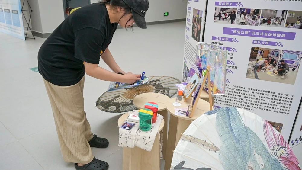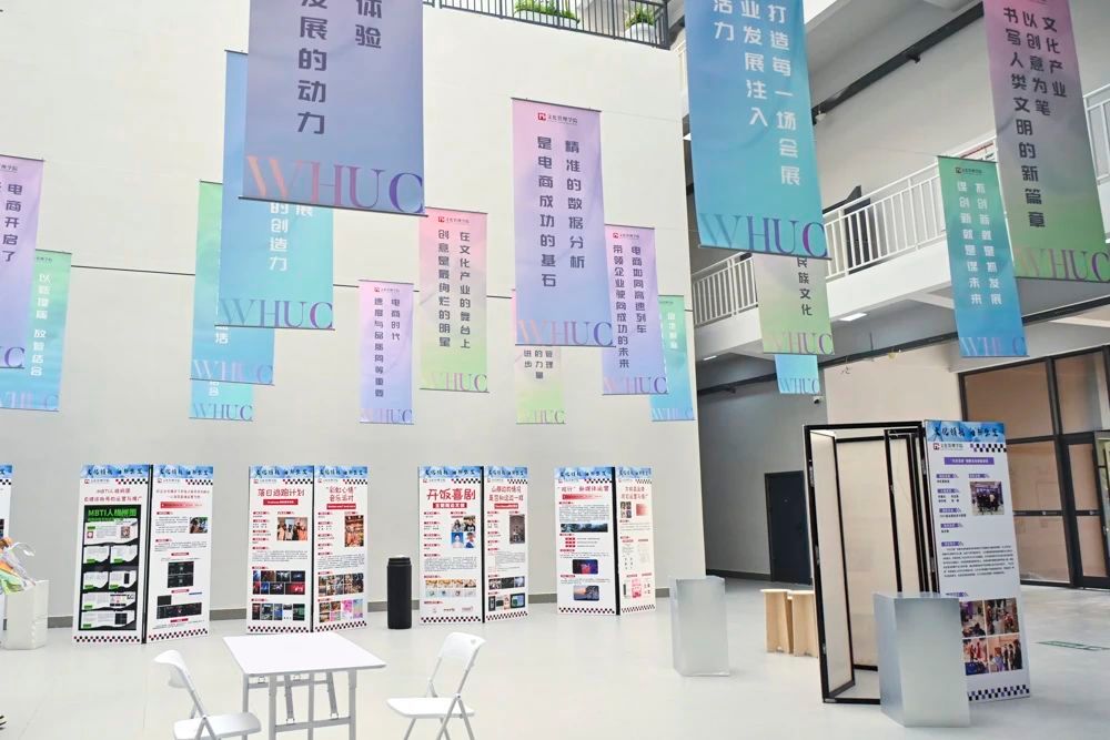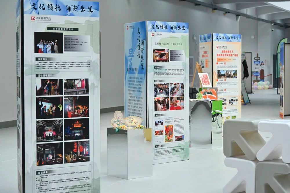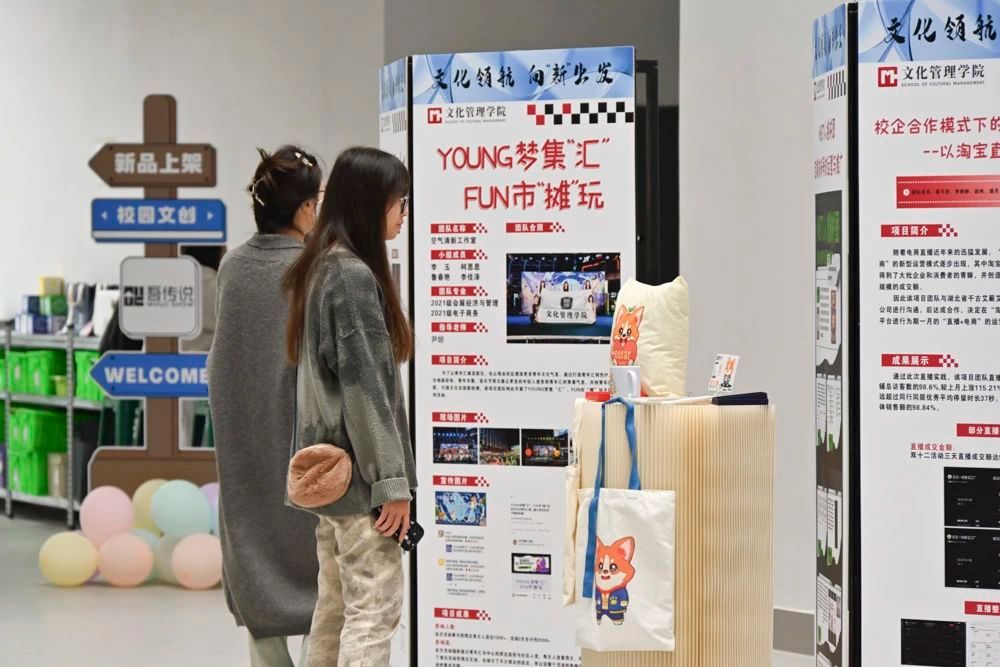 “文化活动进商圈”展区集中展示了文化产业管理专业与会展经济与管理专业员工的毕设项目。这些项目主要以商圈为服务重心,探索文化产业与商圈融合发展的新路径,提升商圈的文化底蕴与吸引力。