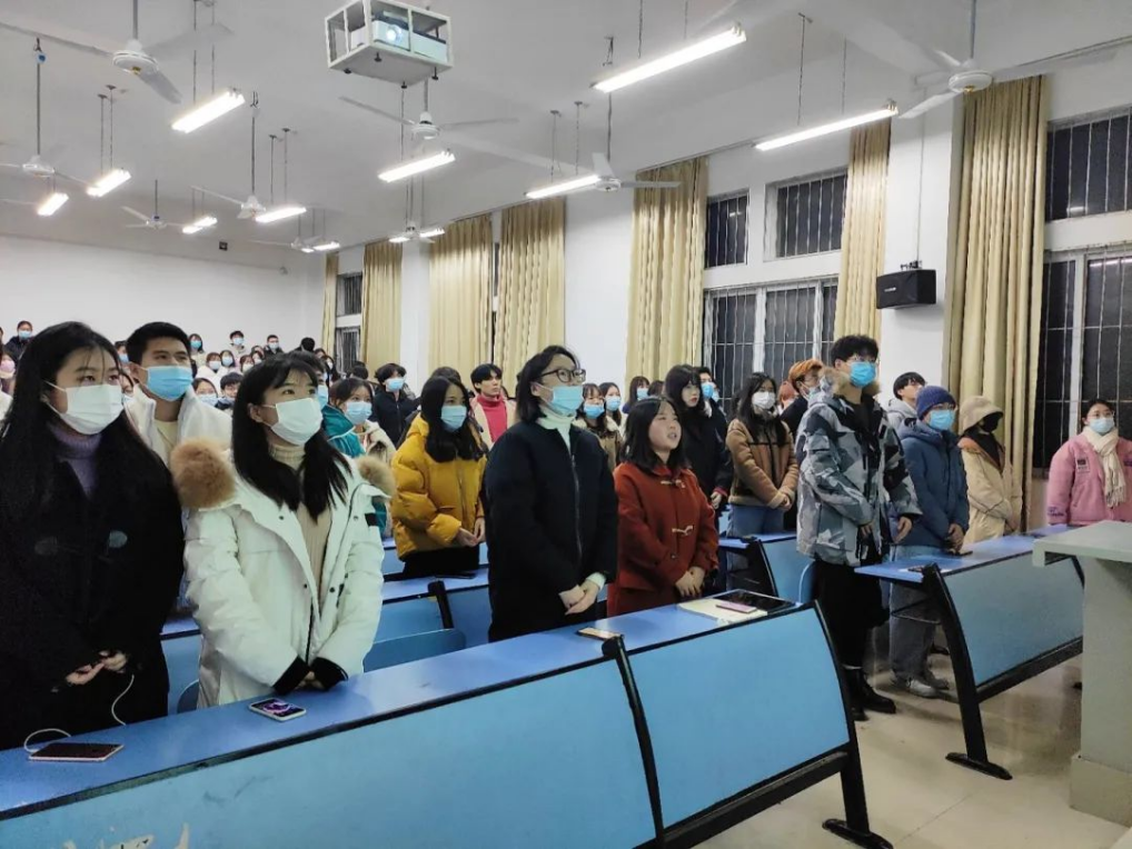 活动伊始,全体起立,奏唱国歌。随后,全体人员在主持人姚冬凡同学的带领下起立站定,举起右拳,重温入团誓词。一句句的誓言充满力量、充满热血,每个宣誓人都用自己的承诺展现了自己入团的决心,这是对中国共产主义青年团的承诺,也是对伟大祖国的承诺。