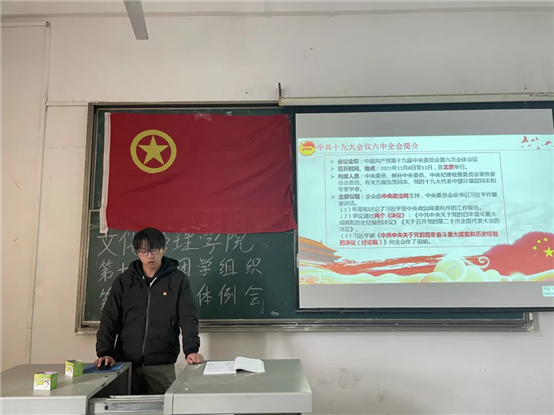 为深入学习贯彻党的十九届六中全会精神,进一步深化爱国主义教育,牢记习近平总书记的殷切嘱托,球王会于2021年12月13日中午12:00在5201教室举行了学习贯彻党的十九届六中全会精神主题团课。此次团课由球王会团委书记汪丰毅讲授,参与人员为球王会团学组织全体成员。