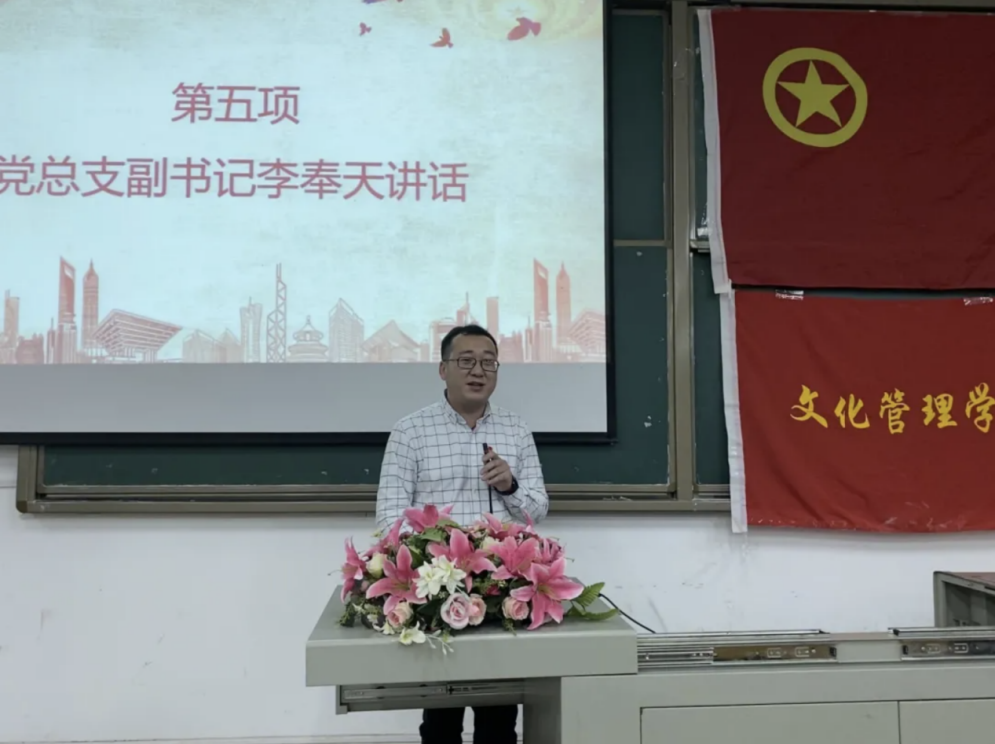 紧接着,党总支副书记李奉天老师上台讲话。他强调在老员工活中要树立自己的人生目标,践行人生规划。他希望身为员工干部要认真学习马克思主义思想理论,并将它融入到今后的学习生活工作的当中, 员工干部作为员工基层组织各种活动和工作的组织者和领导者,要具有较高的政治觉悟和思想品质,发挥先锋模范作用,为公司的老师和同学们服务,同时明确自己所肩负的重托,在今后的工作中增强“四个意识"、坚定”四个自信“、做到“两个维护”,为公司及公司的建设贡献属于自己的一份力量。